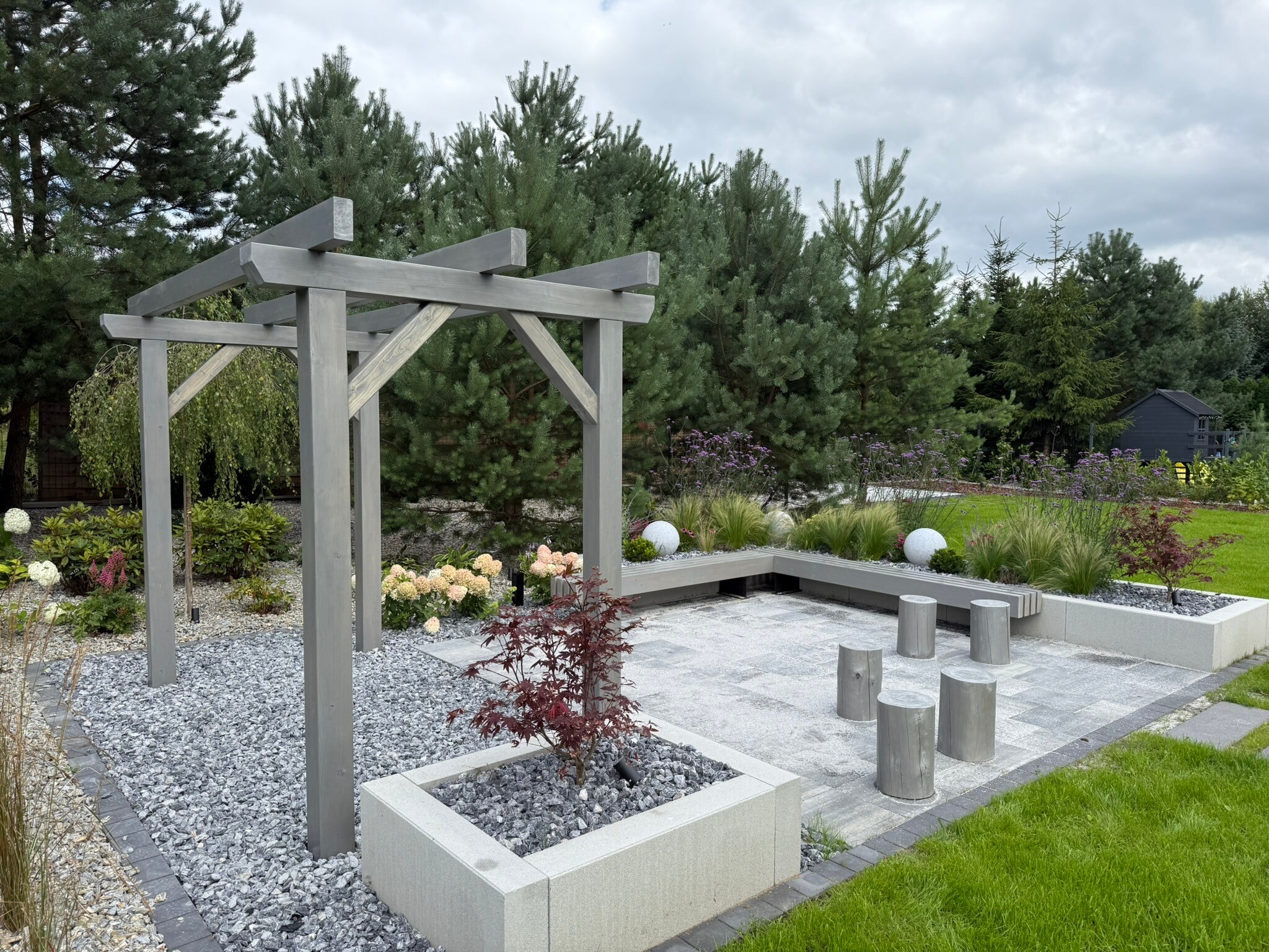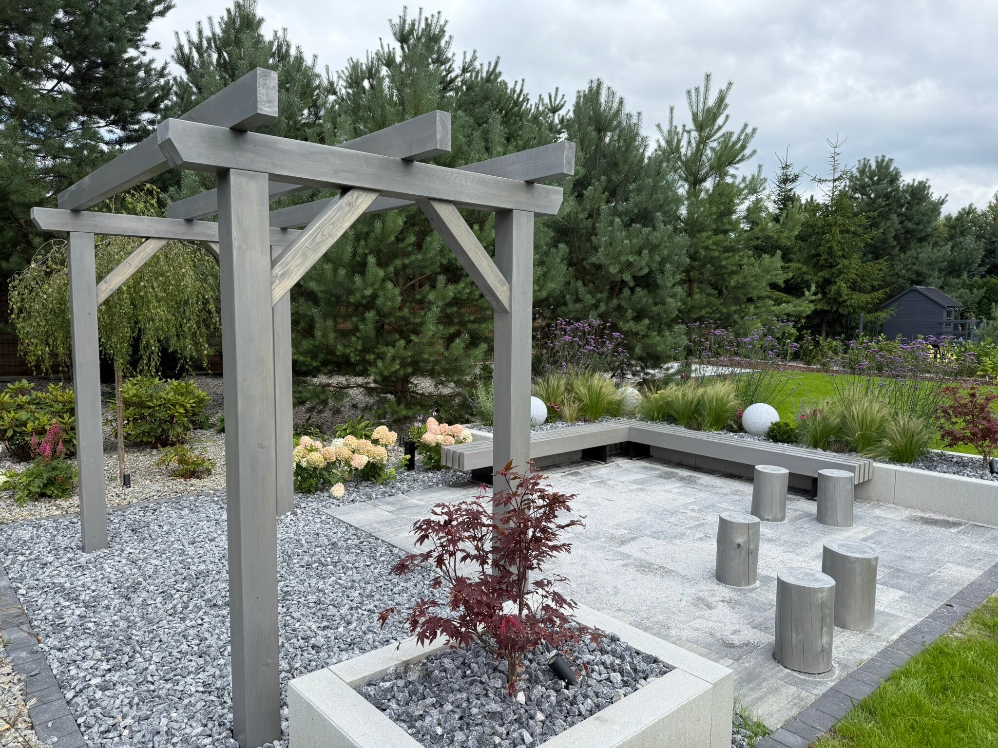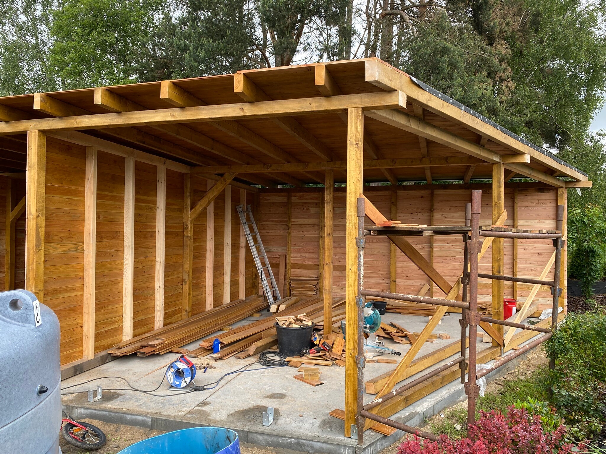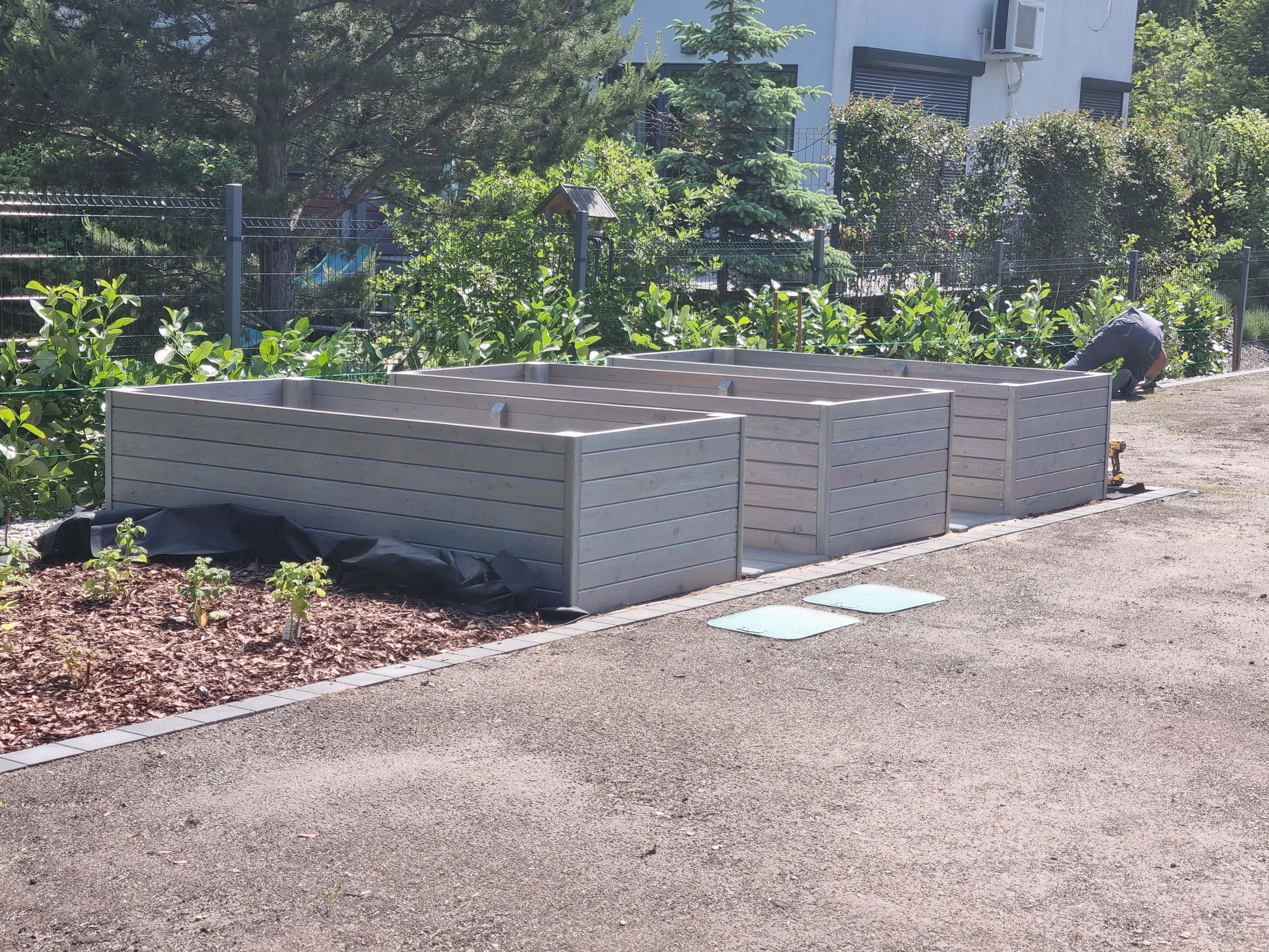 Nowa wiata, która zawiera również obszerne pomieszczenie gospodarcze, została zbudowana z wysokiej klasy drewna modrzewiowego, znanego z trwałości oraz estetycznego wyglądu. Cała konstrukcja została starannie pokryta blachą na rąbek, co nie tylko podkreśla jej elegancję, ale także zapewnia doskonałą ochronę przed niekorzystnymi warunkami pogodowymi. To wszystko świadczy o najwyższej jakości użytych materiałów oraz profesjonalnym wykonaniu. Warto zaznaczyć, że proces budowy był kompleksowy, obejmując wszystkie etapy, w tym solidne kotwy, które gwarantują stabilność i bezpieczeństwo całej struktury, co ma kluczowe znaczenie dla jej długoterminowego użytkowania.