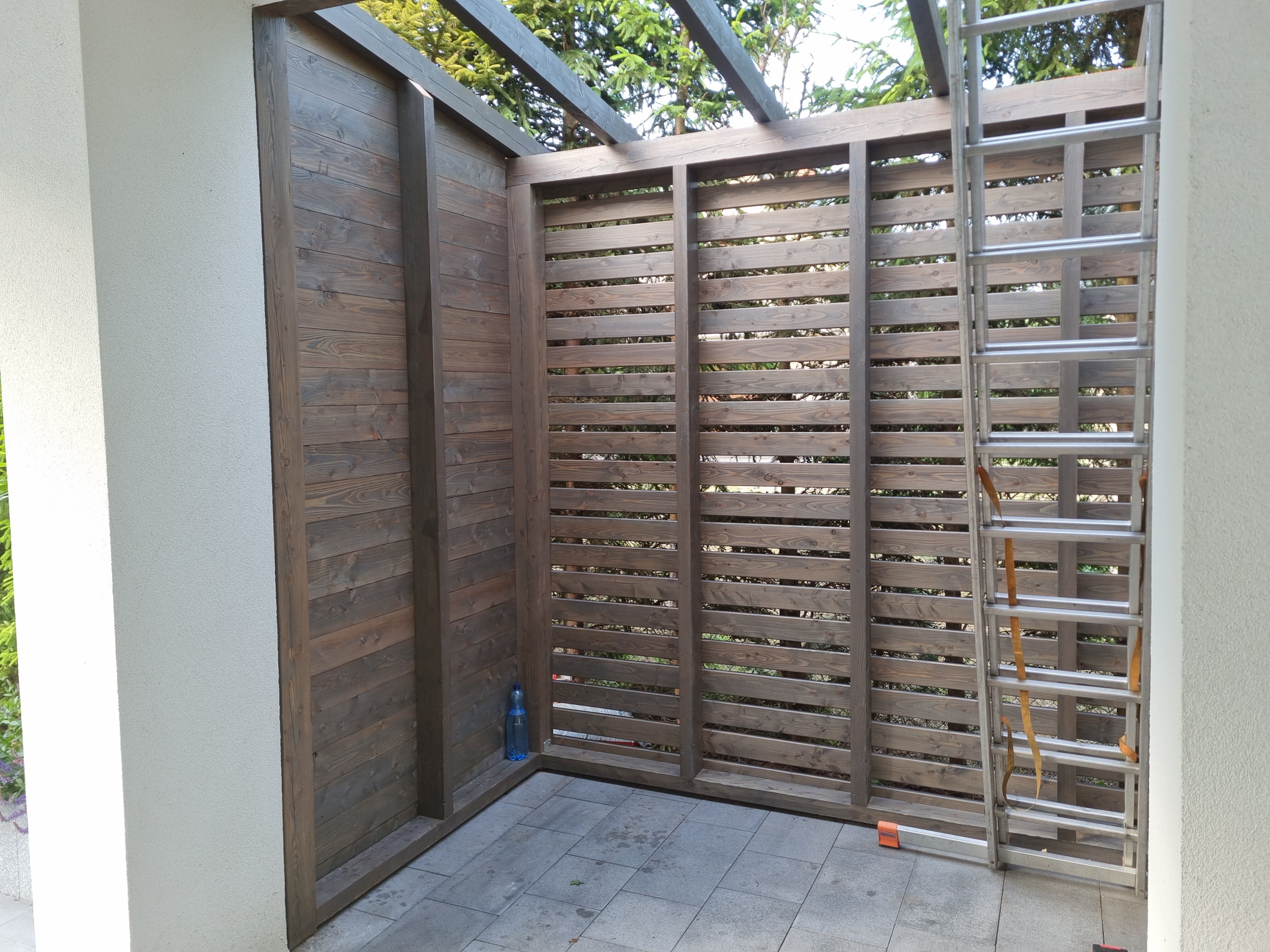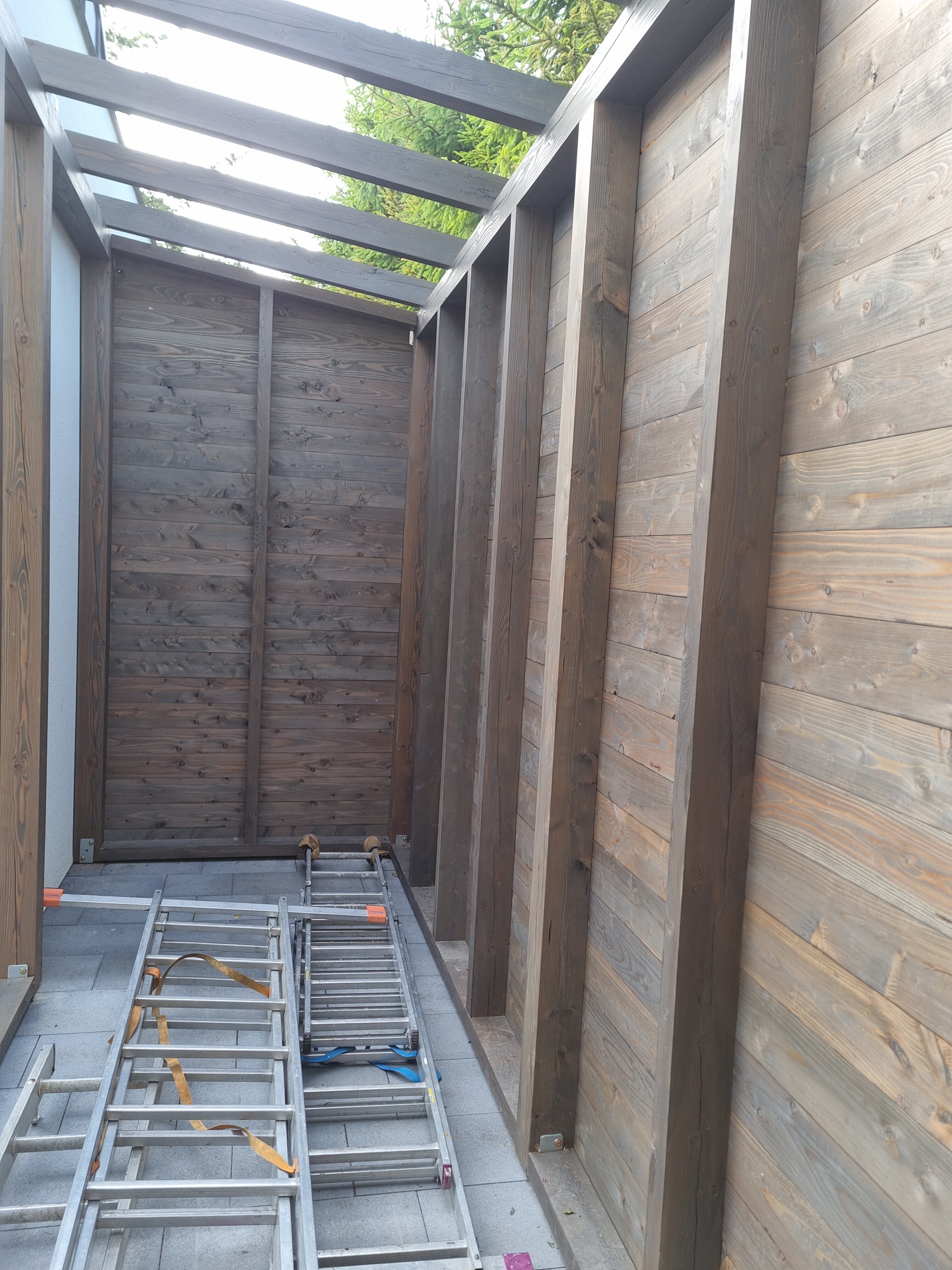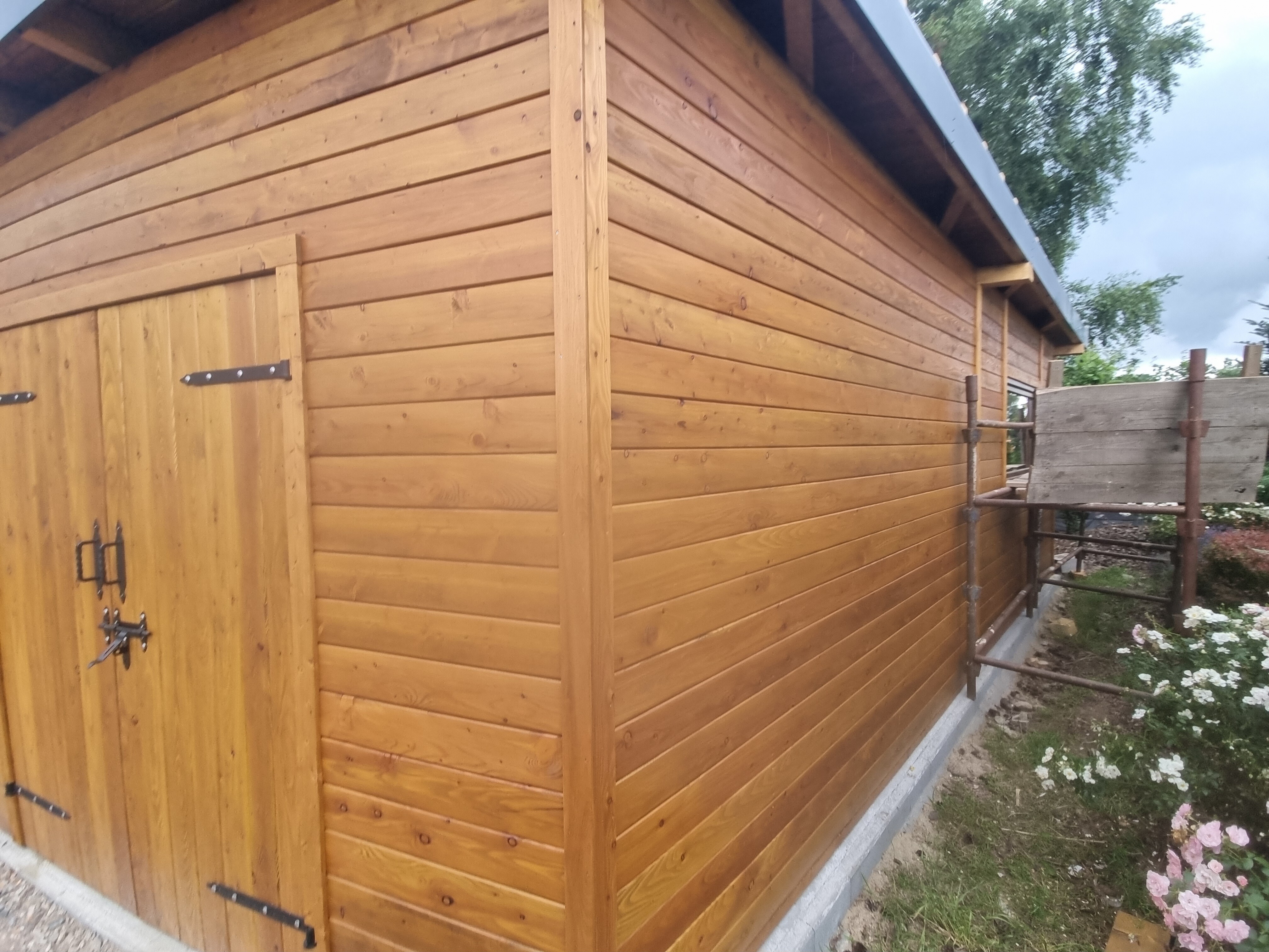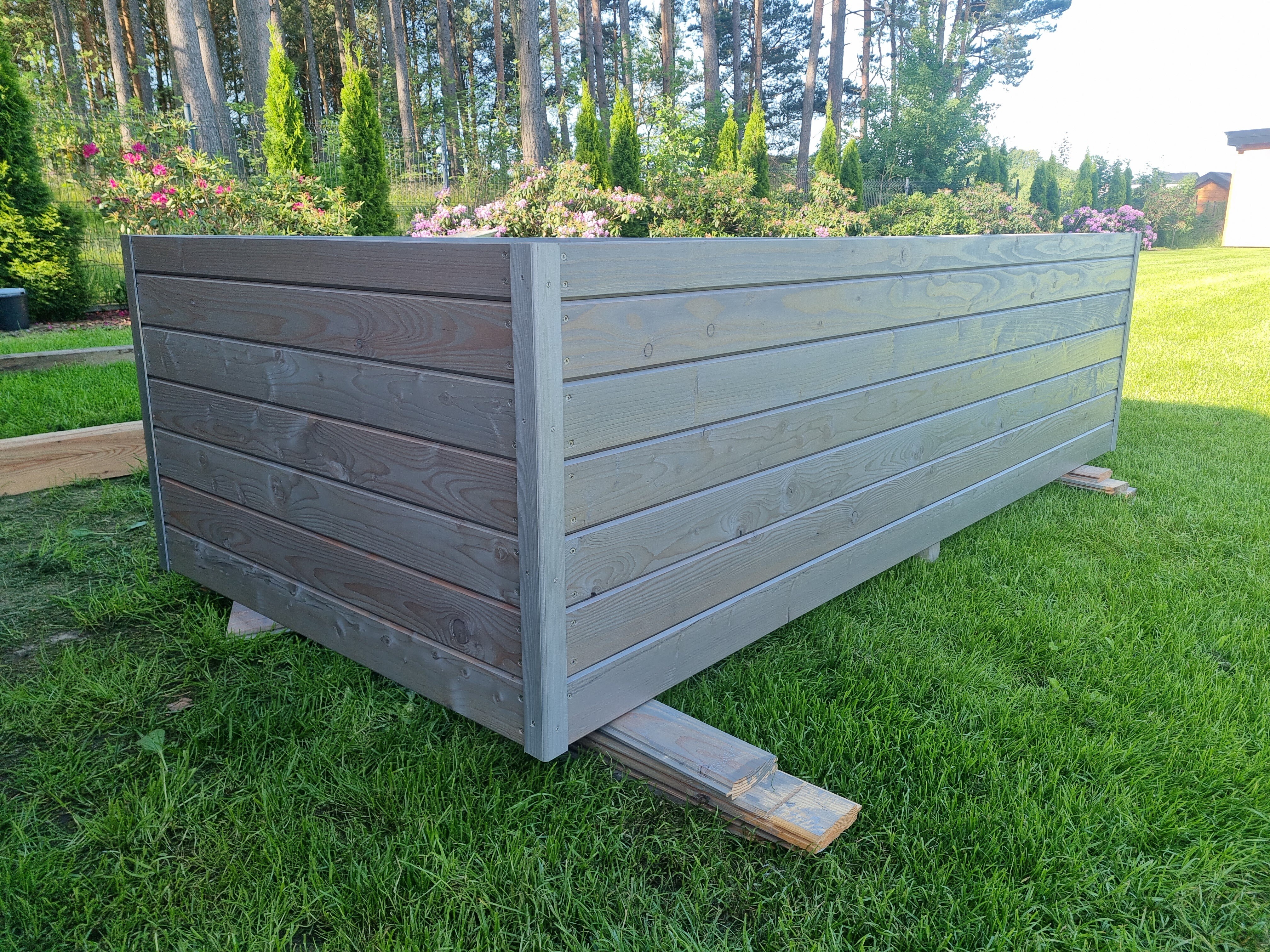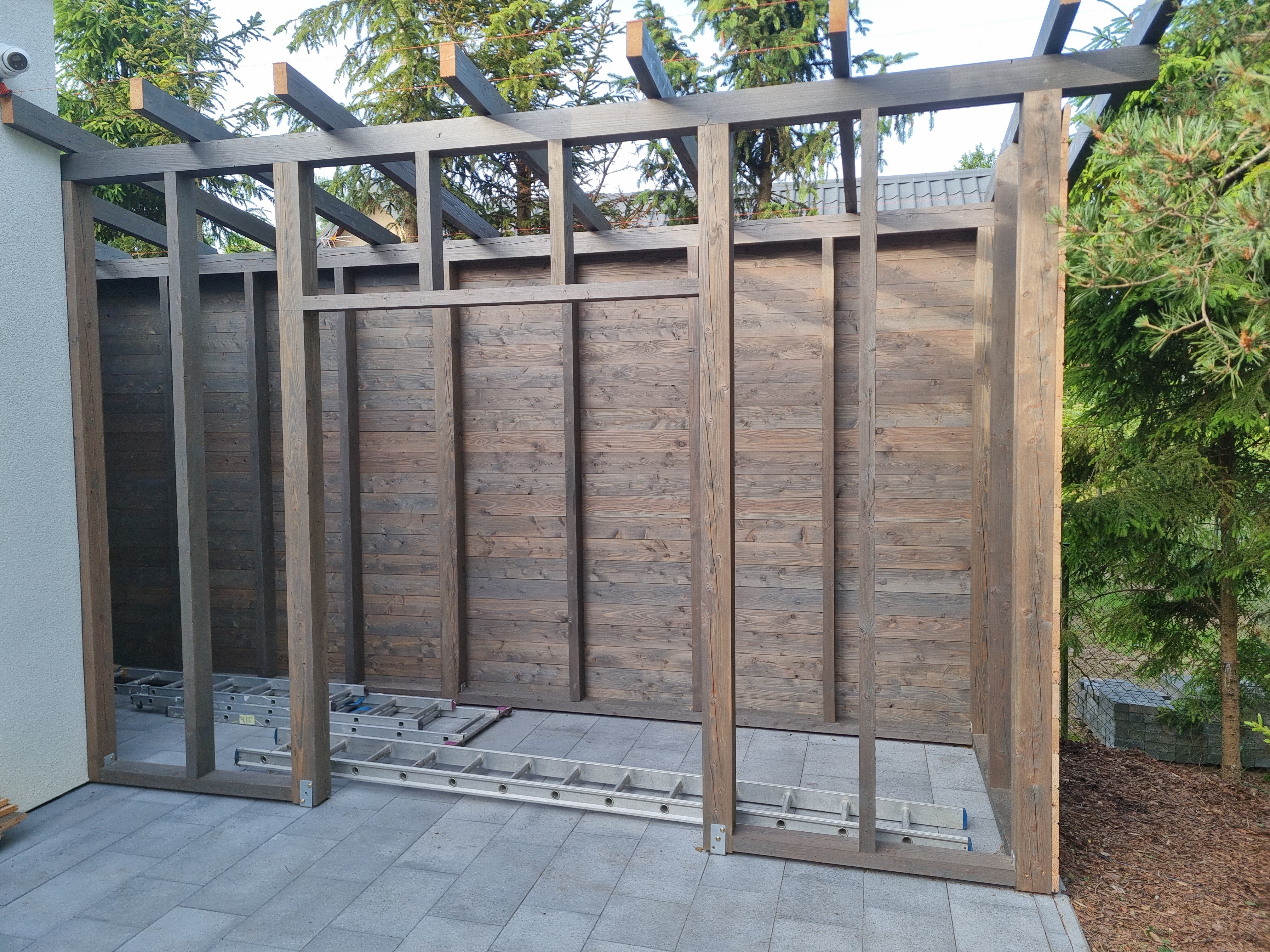 Budowa drewutni z wysokiej jakości materiałów, takich jak drzewo modrzewiowe i wkręty nierdzewne, zapewnia trwałość i estetykę.